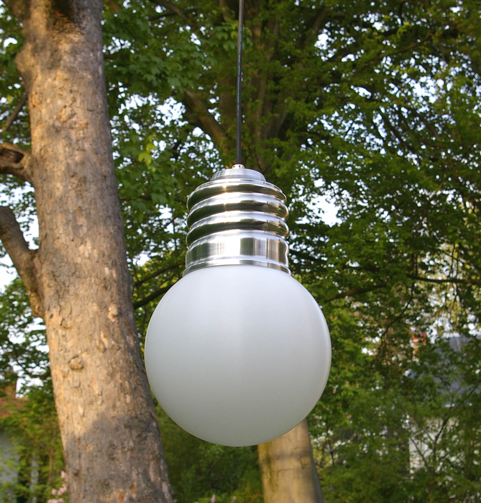 Socle en aluminium poli. Le globe est en polyéthylène résistant aux chocs, traité anti UV.