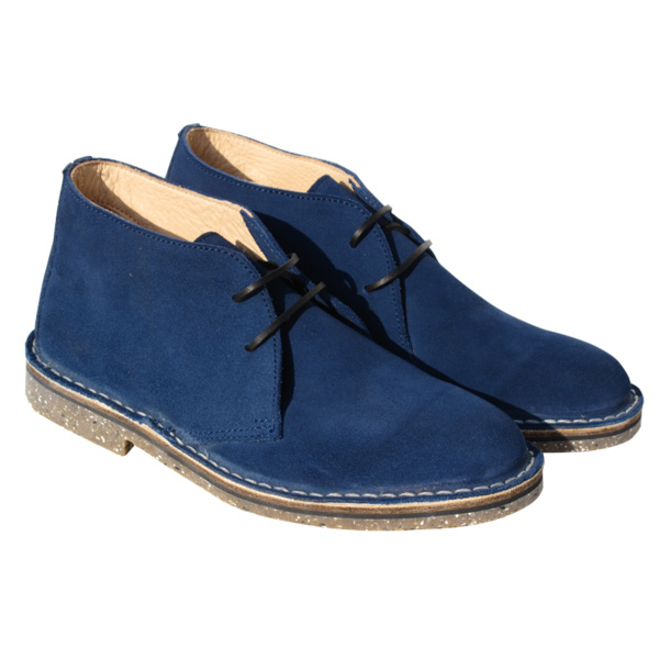 Forme très confortable à bout rond à lacets (2 œillets), la desert boot est cousue main.