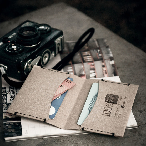 Porte carte en cuir recyclé à 100% – 2 rangements.