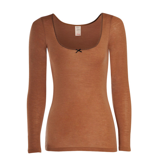 T-shirt manches longues, col rond, Femme Laine et Soie